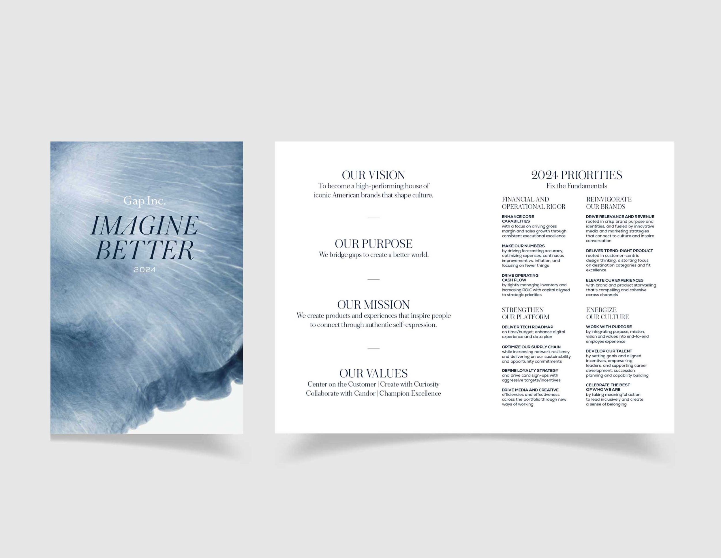 At Gap Inc. there is often we often need to develop extensions of our brand that go beyond general communications and daily brand functions. These projects push the brand guidelines further, with branded look-and-feel that feels different enough to stand alone, but is cohesive with our overall brand.