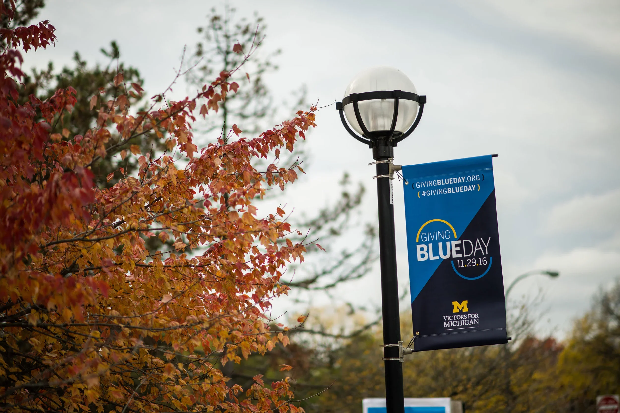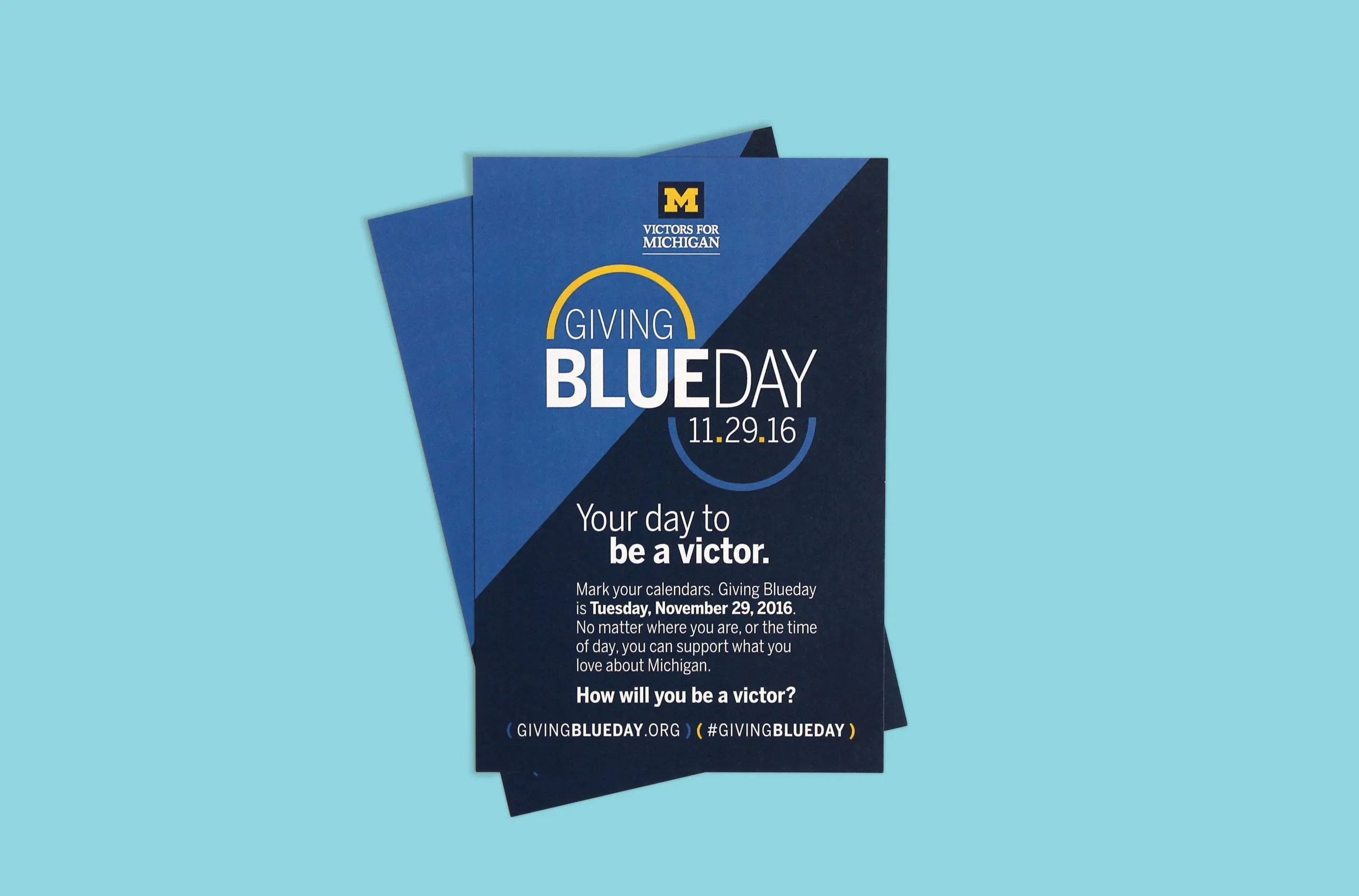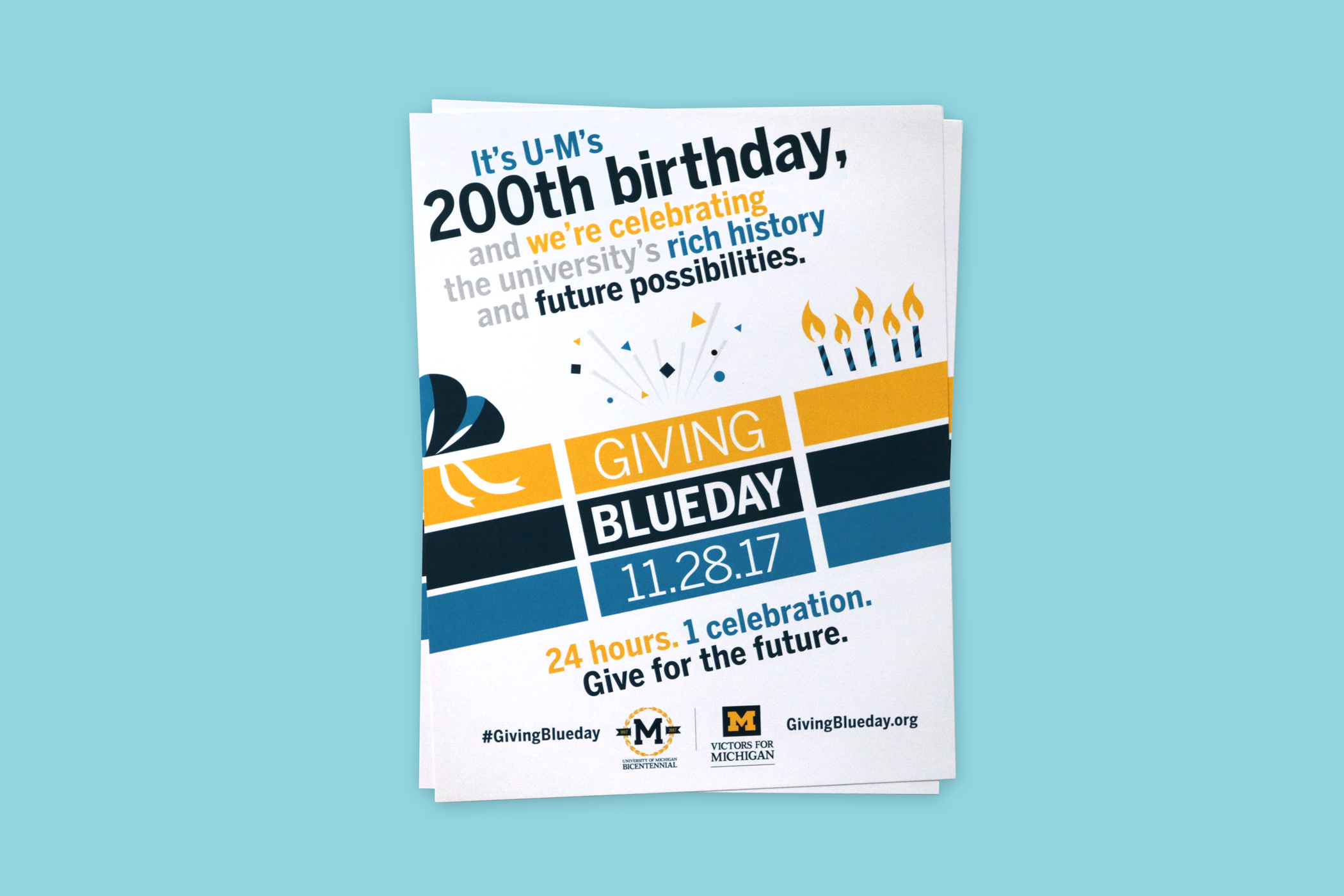 Giving Blueday is U-M’s branded Giving Tuesday, a 24-hour giving day promoted throughout the university with environmental signage, advertising, marketing materials, and events to engage students on campus.