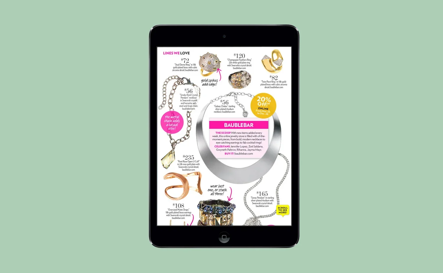 Designed the premiere digital versions of Stylewatch on a mobile device. Developed print-to-digital workflow, designed templates and applied interactive features to create the issue for iPad and Android every month.